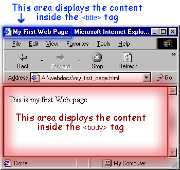 - The browser will show the Web page. The title of the page, My